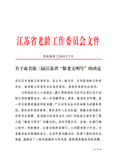 近日,泰州市中醫院老年病科被江蘇省老齡工作委員會(huì )授予第三屆江蘇省“敬老文明號”稱(chēng)號。