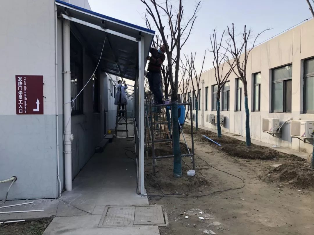 為保證患者就診安全,后勤處迅速成立施工隊伍。經(jīng)現場(chǎng)查勘、細化施工方案、明確任務(wù)分工、前期材料采購等一系列準備工作后,在保證質(zhì)量和施工安全的前提下,爭分奪秒與時(shí)間賽跑,在一夜的時(shí)間內完成了發(fā)熱門(mén)診、隔離房間的改造任務(wù)。
