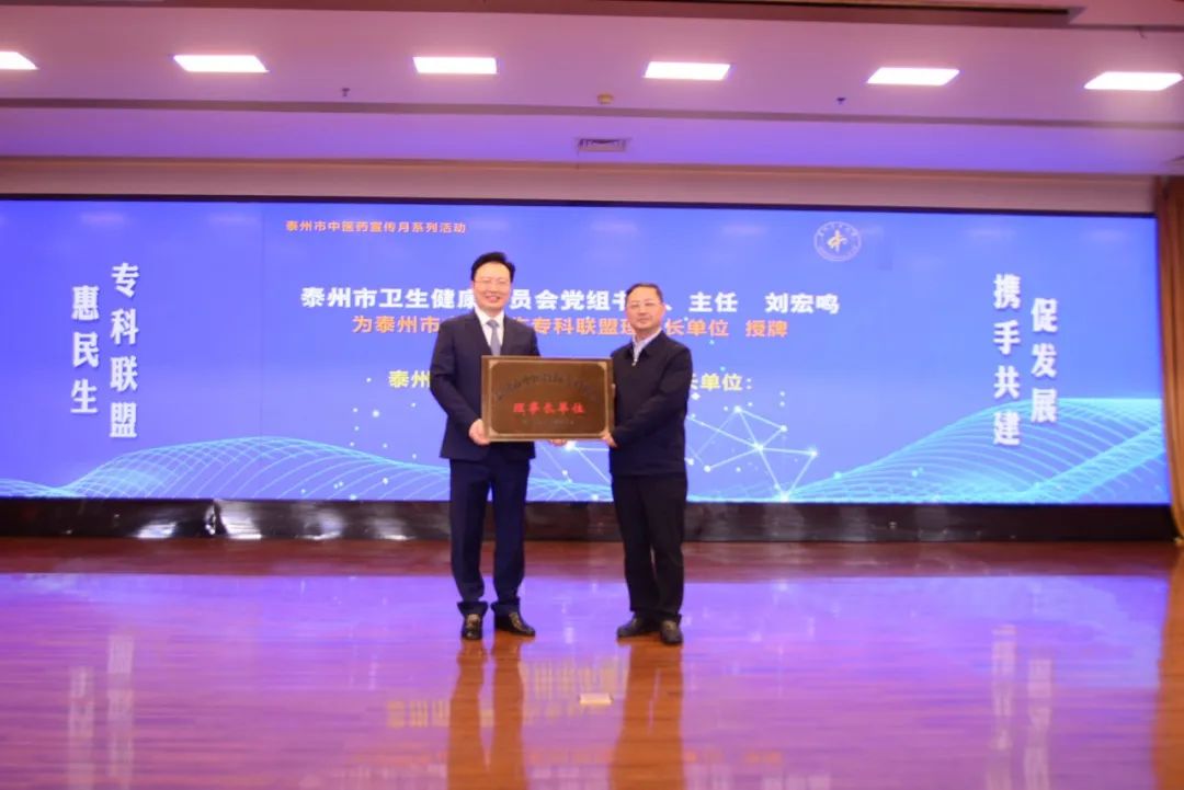 泰州市衛健委主任劉宏鳴為聯(lián)盟理事長(cháng)單位泰州市中醫院授牌