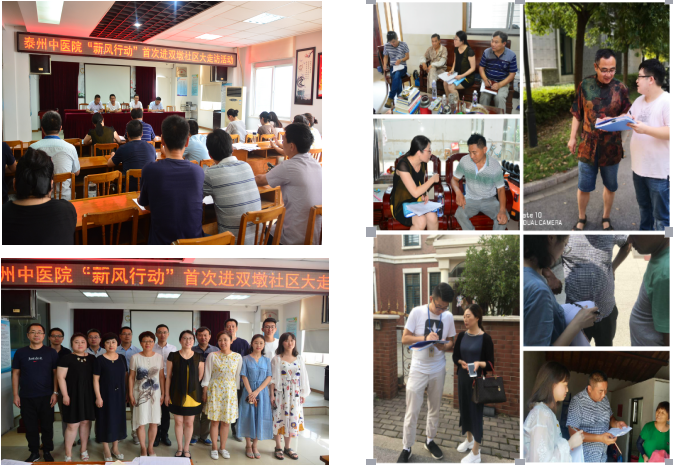 7月28日、7月29日兩天,泰州市中醫院黨員干部冒著(zhù)酷暑兵分兩路,同時(shí)對金東社區、雙墩社區開(kāi)展“新風(fēng)行動(dòng)”首次大走訪(fǎng)?;顒?dòng)以召開(kāi)座談會(huì )拉開(kāi)帷幕,泰州市中醫院黨委副書(shū)記孫曉軍、雙墩社區支部書(shū)記王志壽主持會(huì )議。