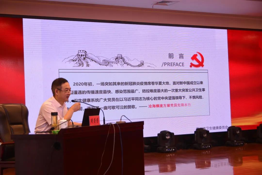 泰州市衛健委四級調研員周榮芳講《滄海橫流方顯黨員先鋒本色》黨課,闡述了在關(guān)鍵時(shí)刻沖得上去、危難關(guān)頭豁得出來(lái)的黨員本色。