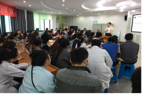 中醫文化淵源流長(cháng)、底蘊深厚,陳園桃主任從“中醫大家”講起,鼓勵學(xué)子們“堅持中醫自信、爭做鐵桿中醫”,闡述了實(shí)踐是檢驗真理的唯一標準-中醫療效要用事實(shí)說(shuō)話(huà)。在講解中,陳主任結合臨床實(shí)踐案例,探討了理法經(jīng)方的應用,對相關(guān)中醫經(jīng)典著(zhù)作作了詳細的解讀,古今上下,娓娓道來(lái),現場(chǎng)氣氛熱烈。陳主任還就“堅持經(jīng)方思維,熟讀中醫經(jīng)典;堅持中醫辨證,切忌中藥堆砌;堅持醫文兼修,增強傳統悟性”等方面進(jìn)行詳細的剖析。