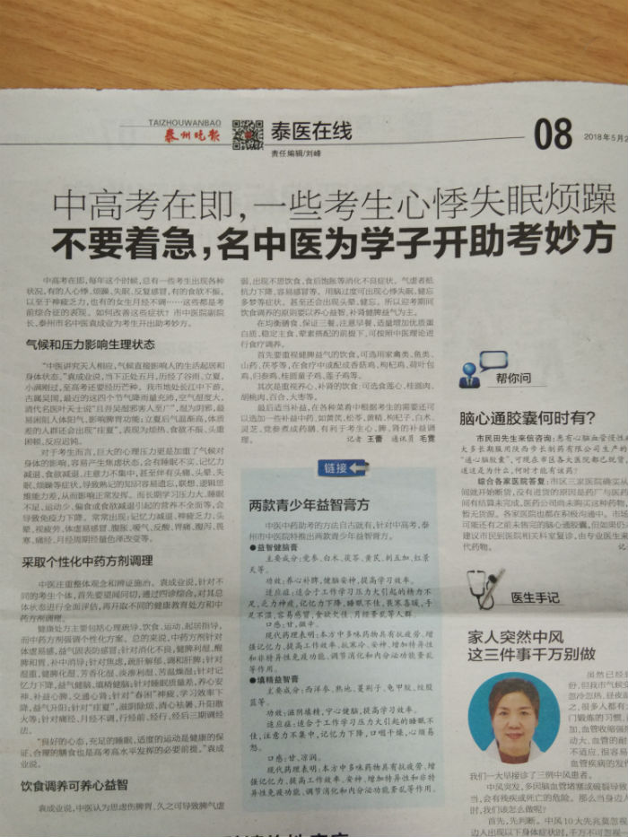 來(lái)源:泰州市中醫院 作者:編輯 時(shí)間:2018-05-23 11:13:00