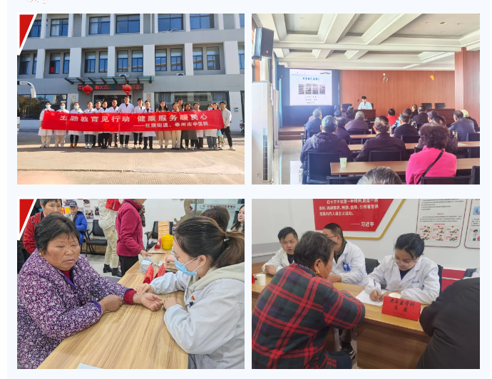 主題教育活動(dòng)開(kāi)展以來(lái),泰州市中醫院黨委緊緊圍繞學(xué)思想、強黨性、重實(shí)踐、建新功的總體要求,牢牢把握深入學(xué)習貫徹習近平新時(shí)代中國特色社會(huì )主義思想這一主題主線(xiàn)和根本任務(wù),進(jìn)一步用黨的創(chuàng )新理論統一思想、統一意志、統一行動(dòng),全面推動(dòng)主題教育走深走實(shí)、見(jiàn)行見(jiàn)效。為進(jìn)一步弘揚新時(shí)代文明實(shí)踐精神,將“我為群眾辦實(shí)事”實(shí)踐活動(dòng)落到實(shí)處。11月24日,泰州市中醫院第九黨支部走進(jìn)紅旗街道、第十三黨支部走進(jìn)中山社區開(kāi)展“主題教育見(jiàn)行動(dòng)、健康服務(wù)暖民心”主題黨日活動(dòng)。