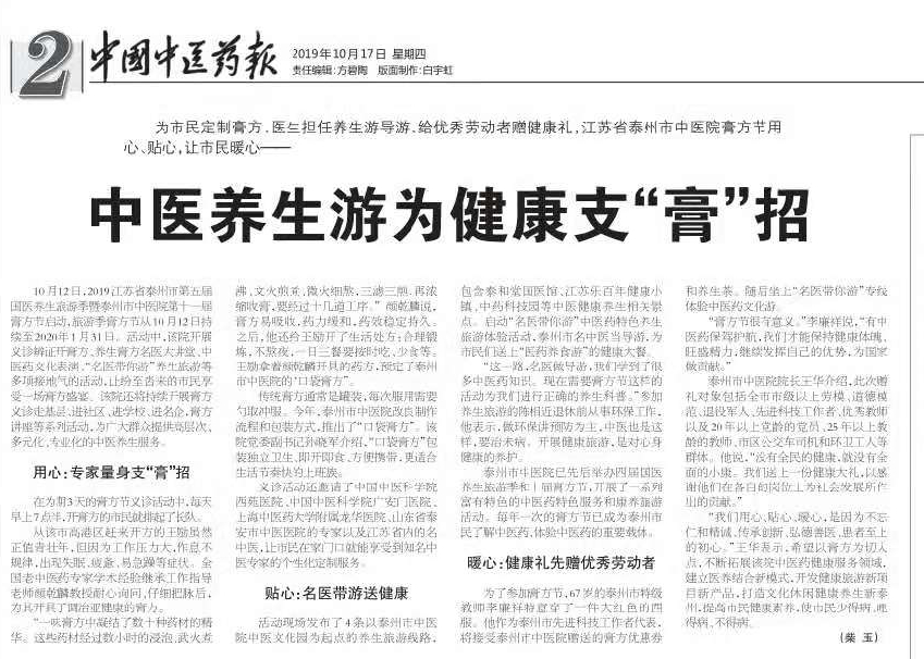 來(lái)源:泰州市中醫院 作者:編輯 時(shí)間:2019-10-17 15:16:00