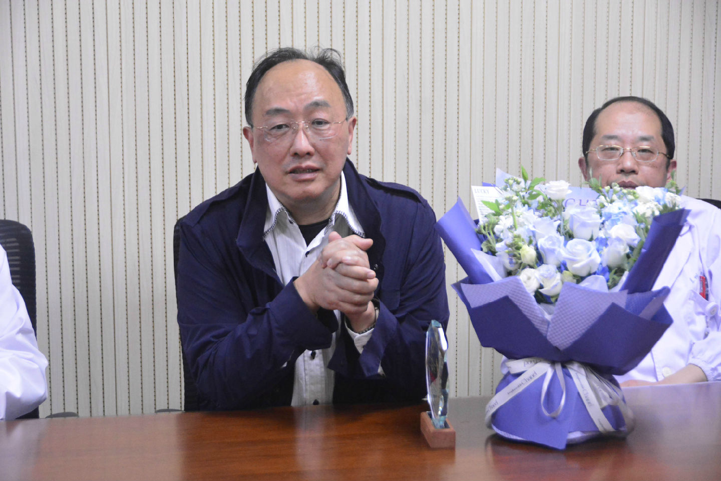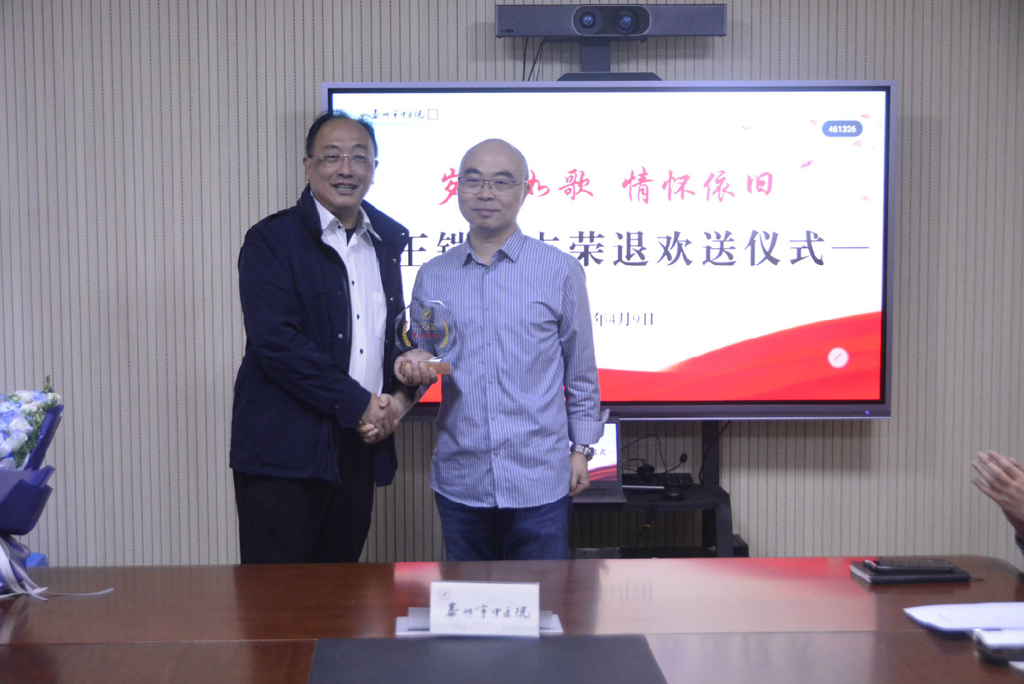 儀式環(huán)節,陳鳳華主任代表科室向王鎧主任獻上鮮花,象征著(zhù)對他職業(yè)生涯的敬意與祝福;殷勇副院長(cháng)、浦院長(cháng)分別為其發(fā)放工會(huì )福利與紀念獎杯,以實(shí)物承載醫院對老職工的關(guān)懷與感恩。